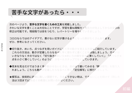 ¡¦Ëܽñ62¥Ú¡¼¥¸°Ê¹ß¤Ë¡¢¶ì¼ê¤Êʸ»ú¤ò½ñ¤¯¤¿¤á¤Î¹©Éפò·ÇºÜ¤·¤Þ¤·¤¿¡£¤¤ì¤¤¤Êʸ»ú¤ò½ñ¤¯¤³¤È¤ÏÂçÀڤʤ³¤È¤Ç¤¹¤¬¡¢³Ø½¬¤ò½Å¤ÍÍý²òÎÏ¡¦³µÇ°ÎϤ¬¸þ¾å¤·¤Æ¤«¤é¤Îʸ»ú¤Î½¤Àµ¤Ï²Äǽ¤Ç¤¹¡£¸½Ãʳ¬¤Ç¤ÏÌܤò¤Ä¤à¤ê¡¢¥ì¥Ñ¡¼¥È¥ê¡¼¤òÁý¤ä¤·¤Æ¤¤¤¤Þ¤·¤ç¤¦¡£