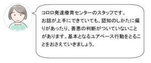 今回、発覚したことが幸いと思って、二度と同じ過ちをさせないよう、療育的視点から、今後の対応プログラムを考えていきましょう。