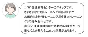 など、発達障害を持つお子さんの発達上の問題に対し、コロロではさまざまなトレーニングを行っています。