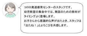 そこで個別ではなく、集会中に集団の力を使って発語練習を行うことにしました。